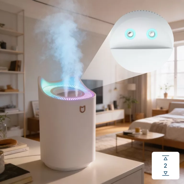 Our humidifier has two nozzles, enabling it to cover larger areas. A more humid environment can help prevent dry skin and sinus congestion.