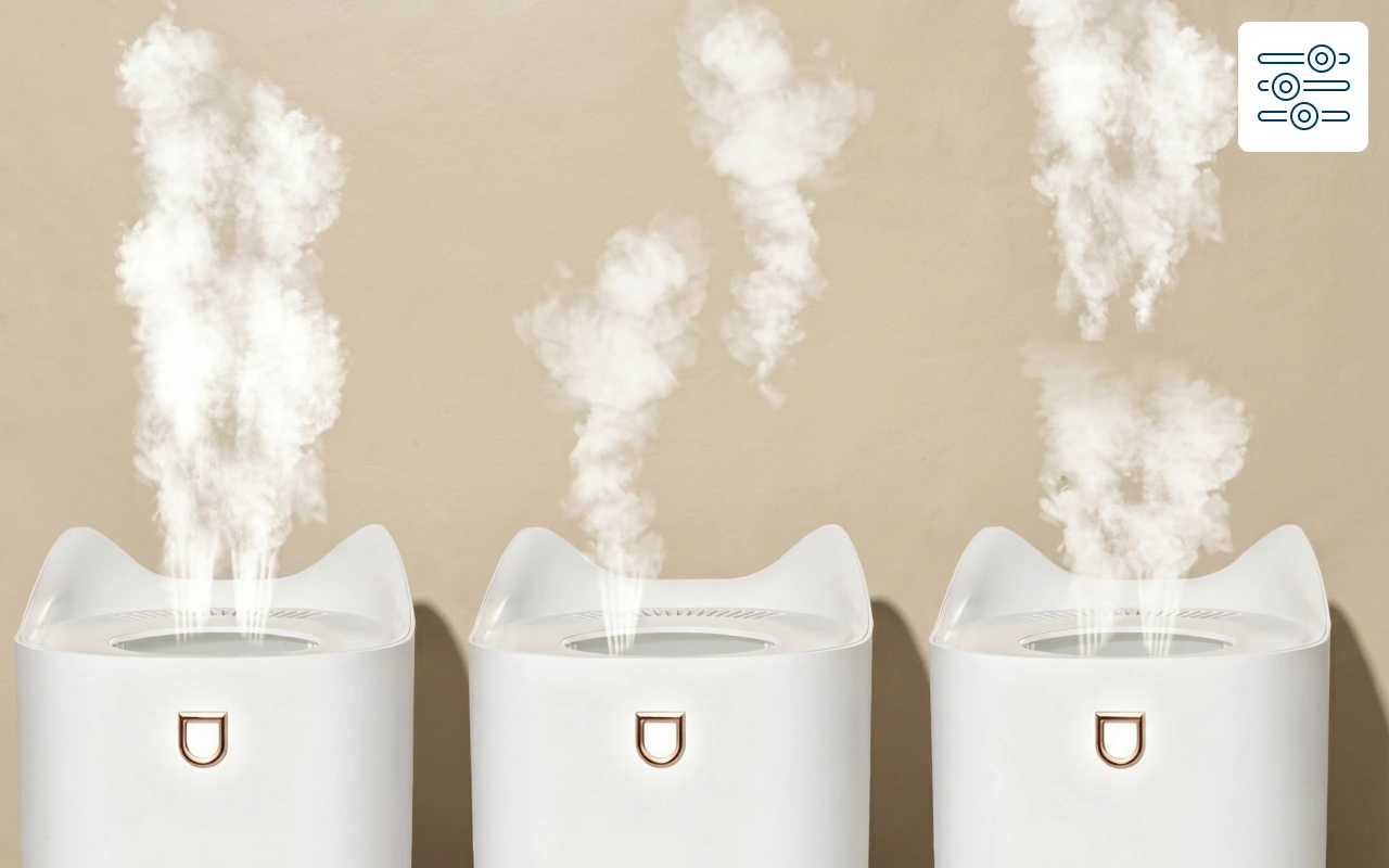 You can control the intensity by choosing between continuous, intermittent, or alternate modes. This flexibility ensures the optimum humidity level is always maintained.