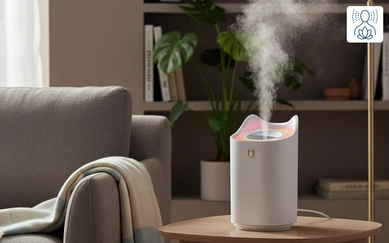 Our humidifier will fill your room with essential oil scents, boosting your mood and reducing stress. Choose your favourite aroma to achieve a more calming atmosphere.