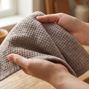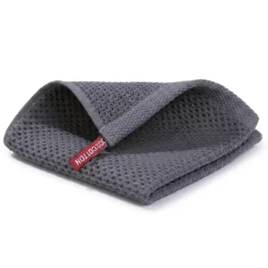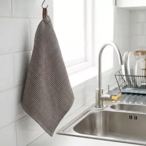 This waffle cloth makes washing up less of a chore. It grabs every drop from pots and plates, and our stainless steel sink looks polished afterward.