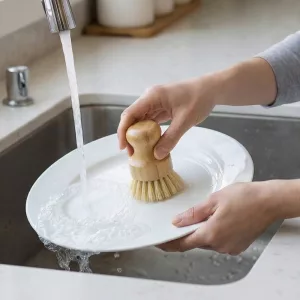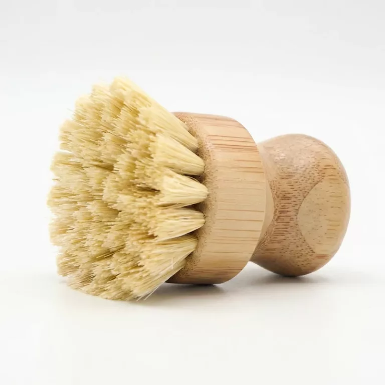 The bamboo handle feels smooth, never slips, and saves my fingers when I wash a big stack of dishes. Stiff bristles clear out stuck food with little effort.