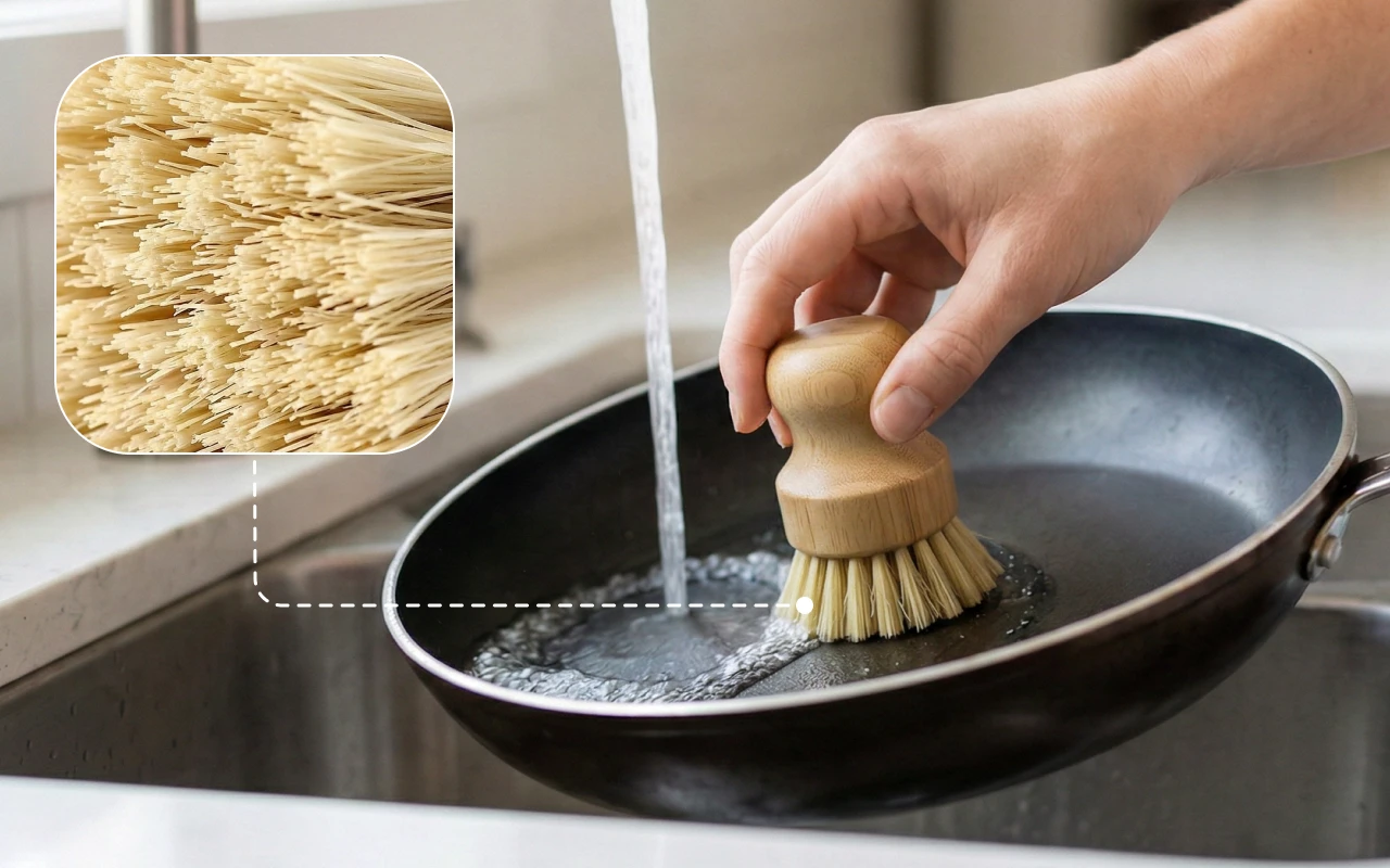 This little brush surprised me. The handle feels solid, the bristles reach into pan corners, and even baked-on sauces come off without leaving marks.