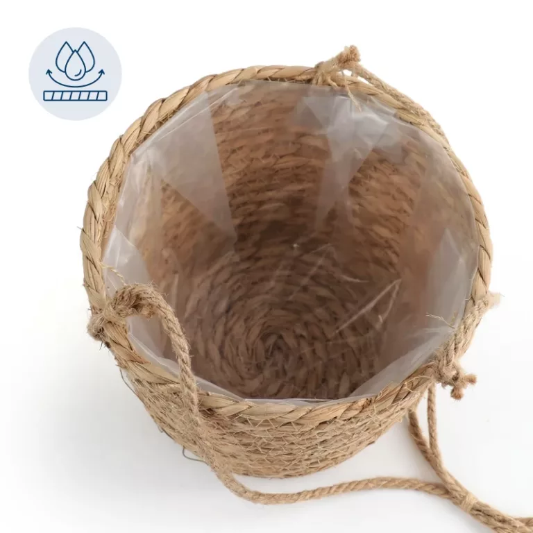 Nygex macrame holder turns unused space into calming nature. Handmade jute weave brings gentle warmth into every dull room. Strong ropes keep favourite foliage safely displayed above busy floors. Plastic lining stops leaks, so furniture and carpets stay spotless.