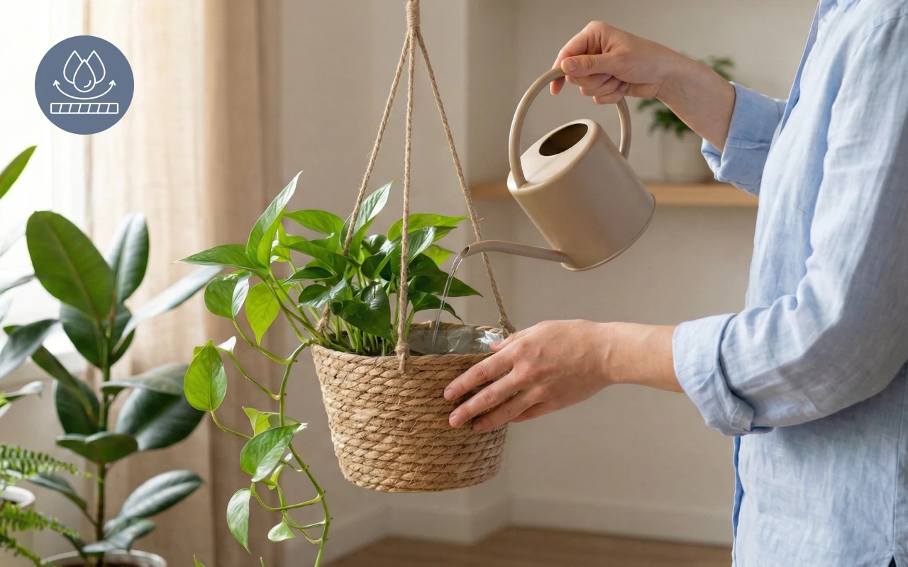 I’m not gentle when I water, but the hidden plastic layer catches every drop. My bookshelf beneath it has stayed spotless for months.