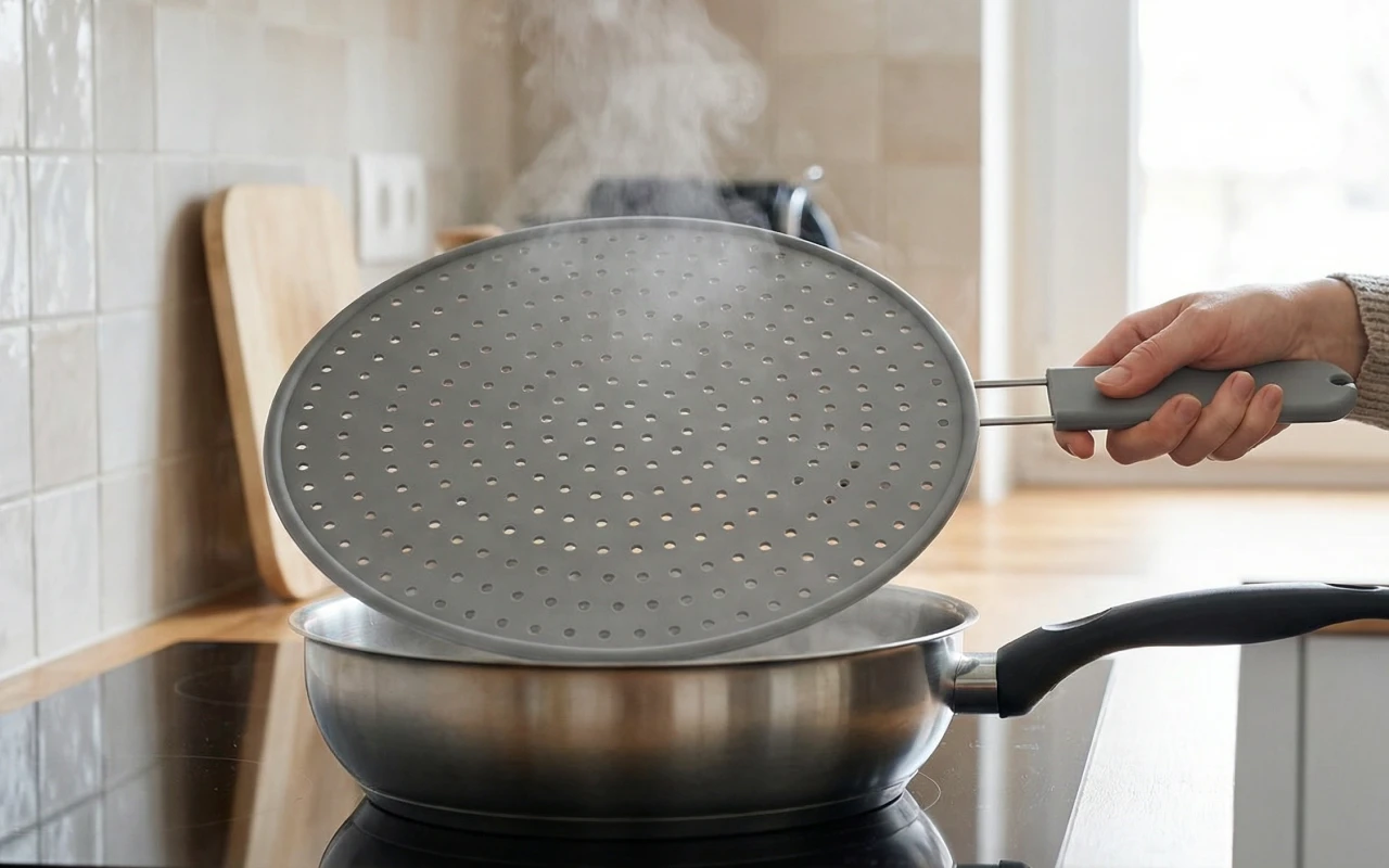 Nygex screen blocks hot droplets, shielding arms from sudden bursts. Worktops, tiles, and cooker fronts remain spotless after every meal.