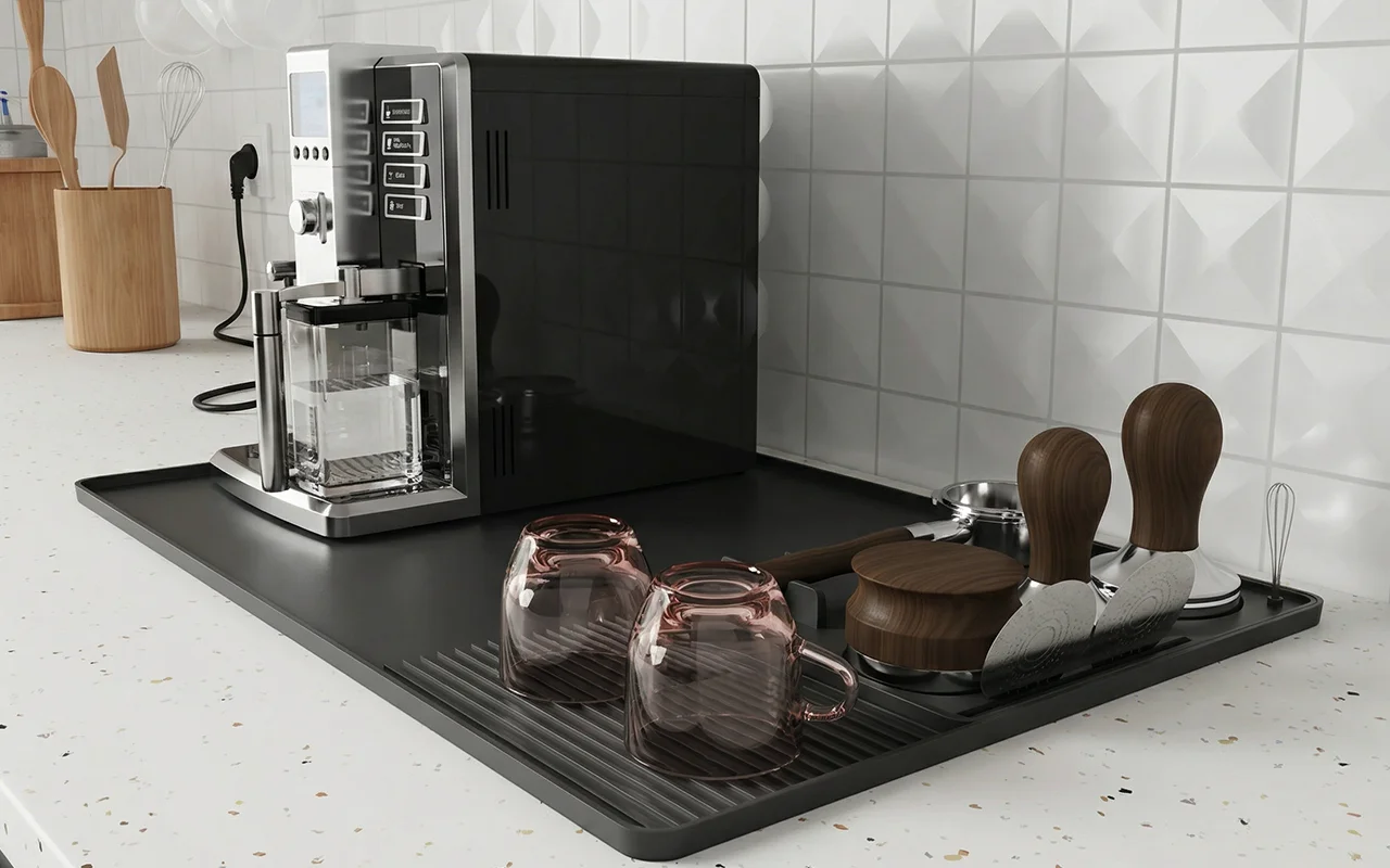 Bought this coffee mat for our busy kitchen and love it. It catches every drip, wipes clean fast, and keeps the counter neat.