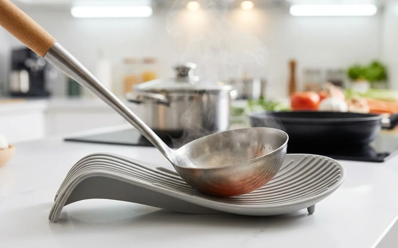 Busy cooks hate sticky rings under dripping serving tools today. Nygex silicone holder catches sauces neatly, protecting delicate counters beautifully. Heatproof design handles sizzling ladles safely, preventing sudden burns. Raised grooves lift utensils above puddles, keeping handles fresh longer.