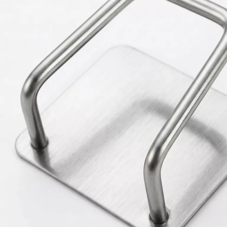 I like that the metal doesn’t show rust even though I splash it every day. The sponge sits upright, dries well, and doesn’t leave marks on the sink surface.
