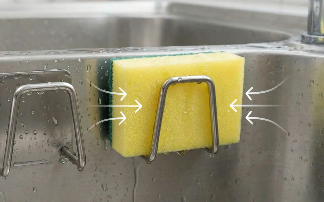 I hated leaving wet cloths in the sink. This caddy keeps them up high so air can reach all sides, and the stale smell around the drain is gone.