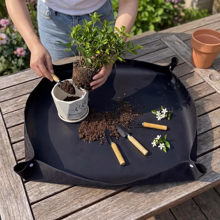 Stop soil scattering across tables, carpets, and kitchen tiles. Nygex Repotting Mat forms a tidy work zone. Raised sides catch compost, water, and loose grit. Finish faster, then wipe it clean easily.
