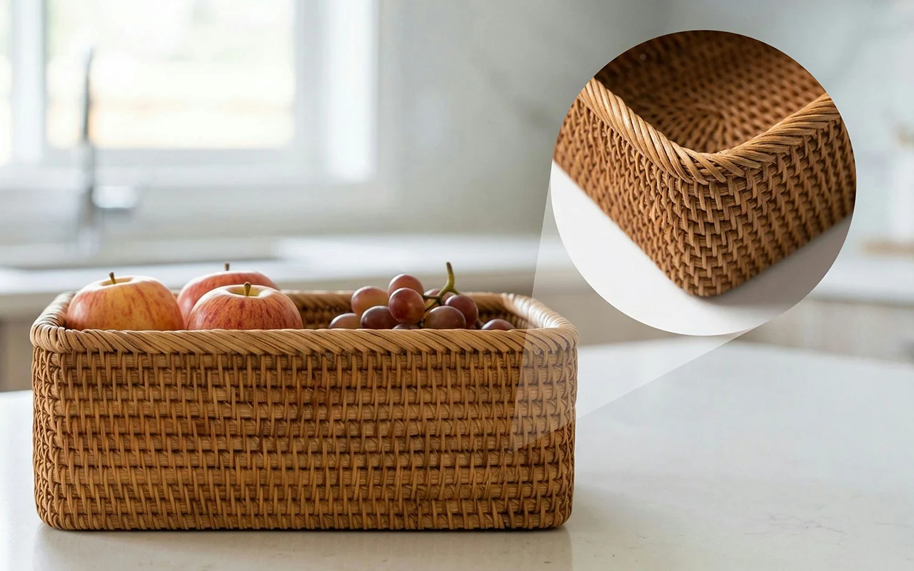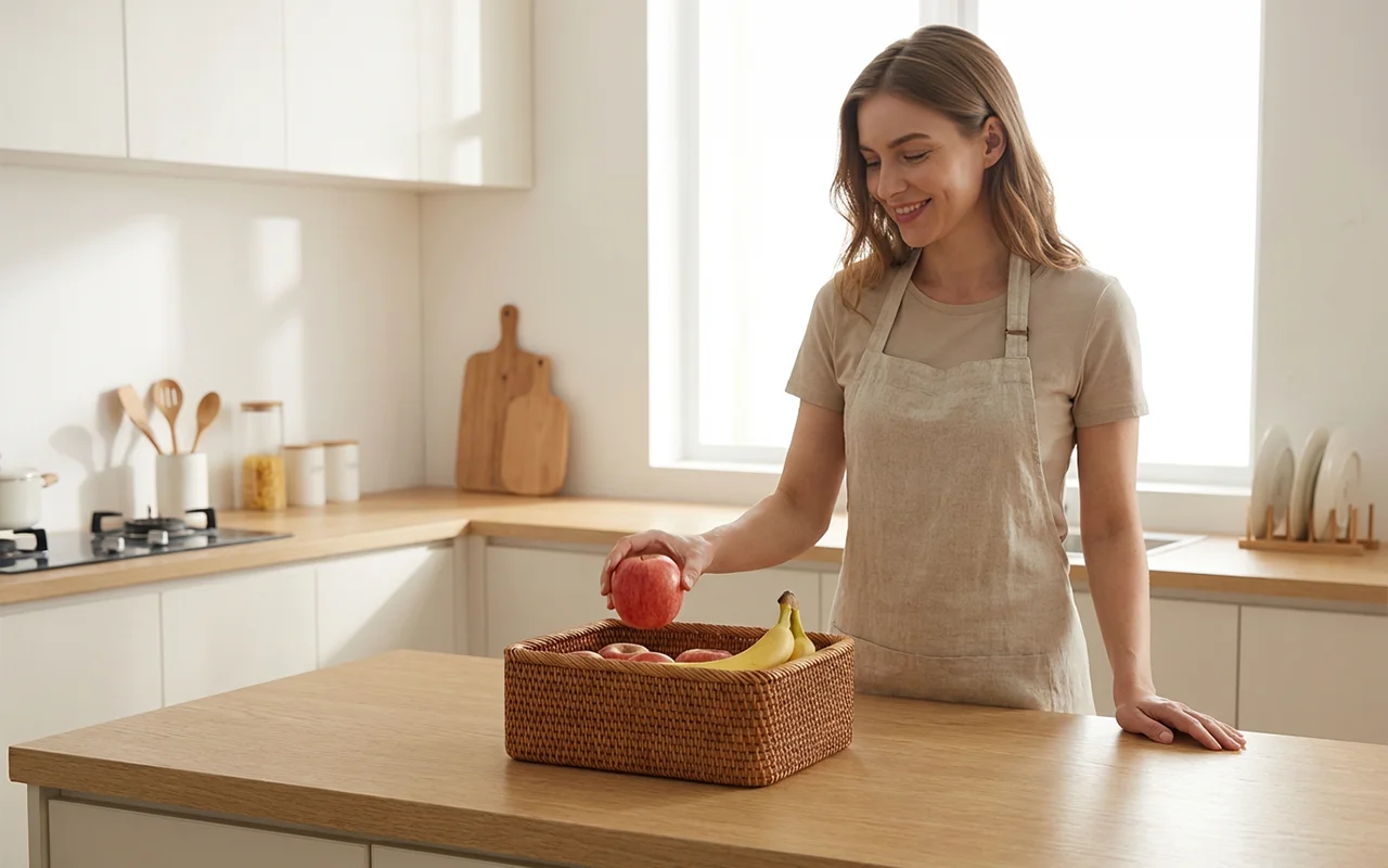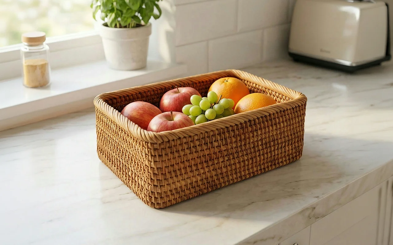 This wicker basket finally tamed the mess on our counter. Fruit stays fresh longer and the natural look makes the kitchen feel calm and cosy.